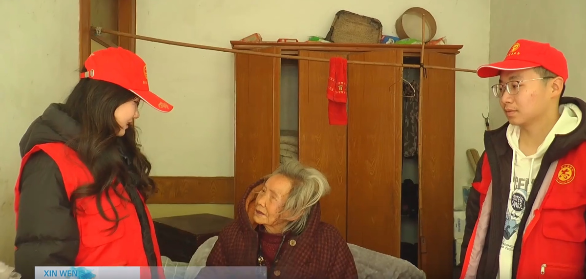 “奶奶,我们是返乡参加实践活动的大学生,快过年了,特地来看您,给您带了些吃的用的。”志愿者们暖心说道。