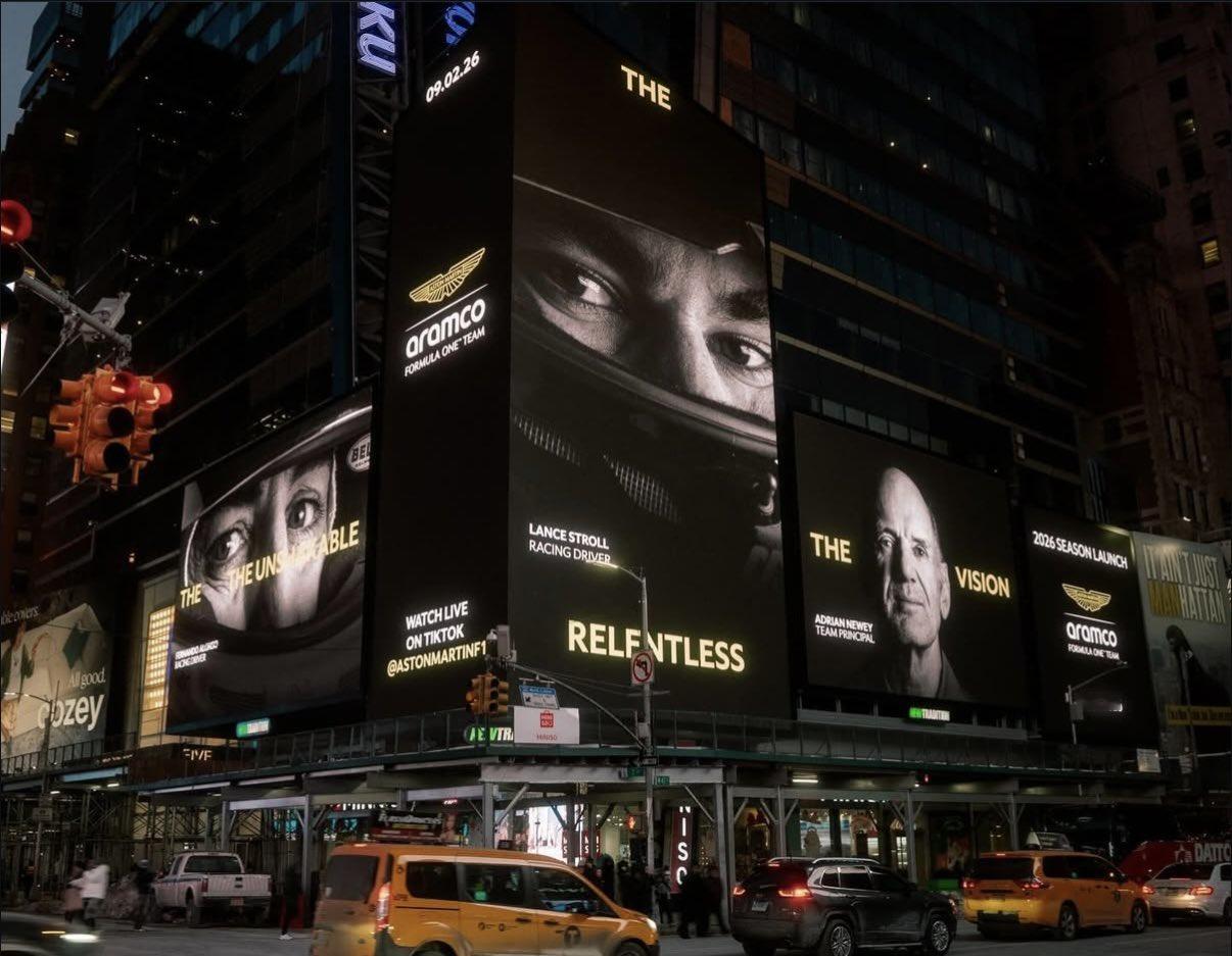 纽维、阿隆索、斯托尔登上纽约时代广场的大屏📺F1