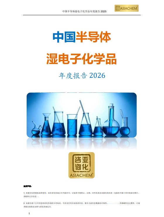 亚化咨询现已推出《中国半导体湿电子化学品年度报告2026》(1月版),共92页,内容包括市场供需分析及预测、企业分析及预测、项目整理、全球行业格局分析等多个内容。
