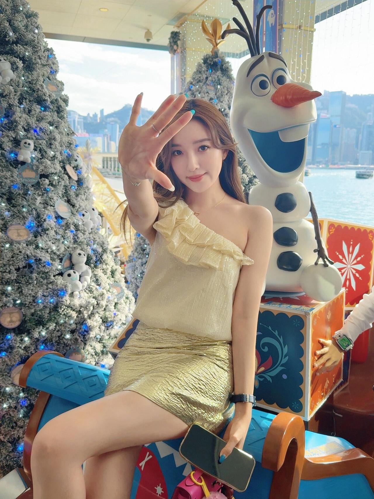 半窗月痕·临江仙·维港畔圣诞闲游 金裙曳落滩头日,银枝缀满星芒。单衫微透海风凉。倚栏凝睇处,云影入衣裳。 雪宝憨姿添意趣,粉包轻挽身旁。摩天楼外水茫茫。回眸一笑里,暖意漫香江。 灯影摇时春欲动,闲游趁此清光。不须追觅远方。眼前风物好,处处是诗行。 漫数檐边星子落,忽觉岁月温长。一帧光影记韶光,人间烟火色,都作鬓边香。