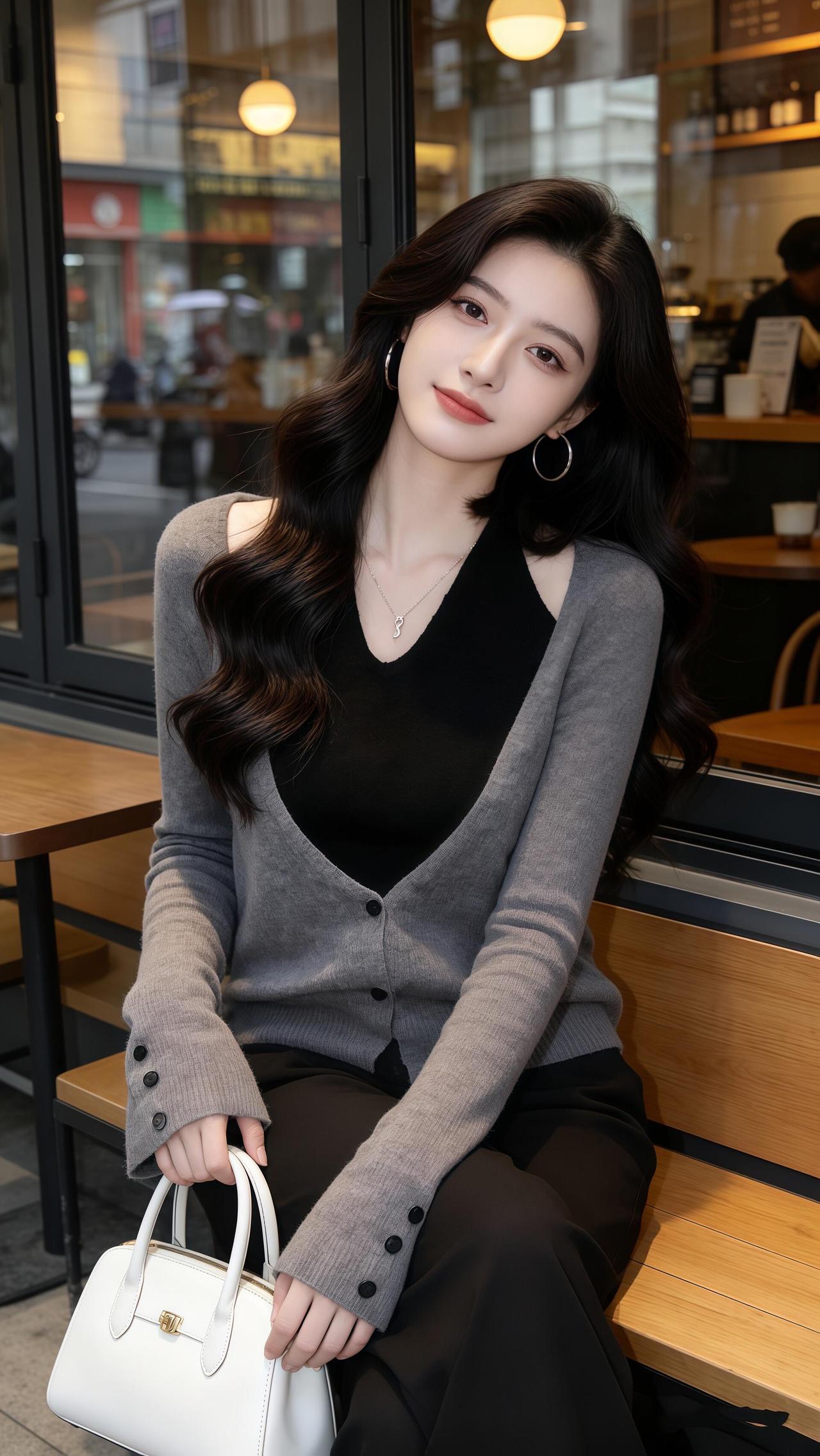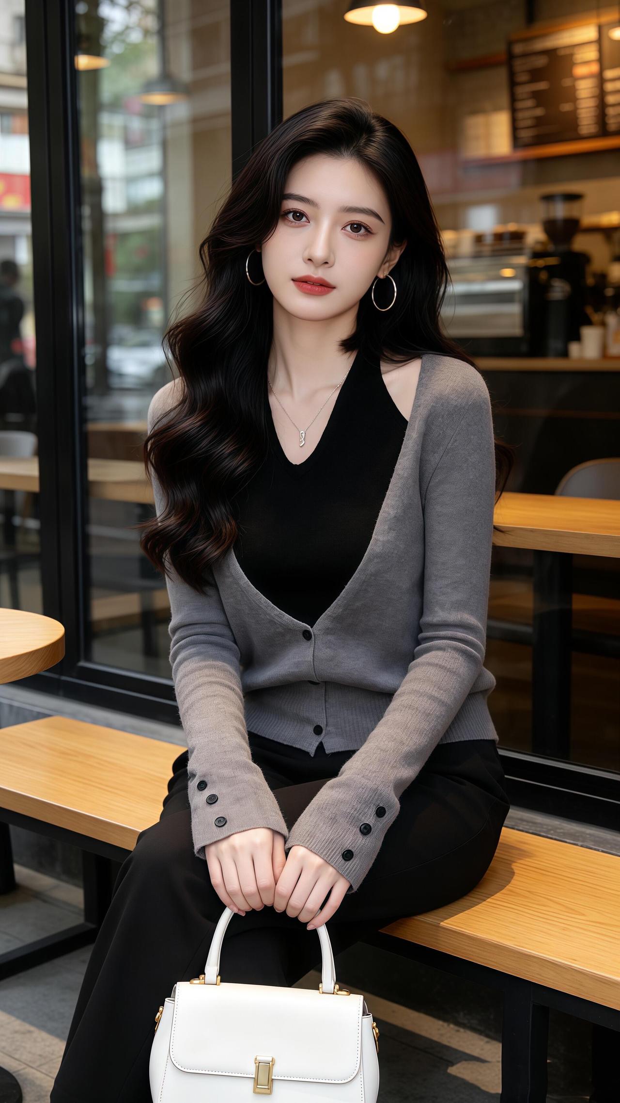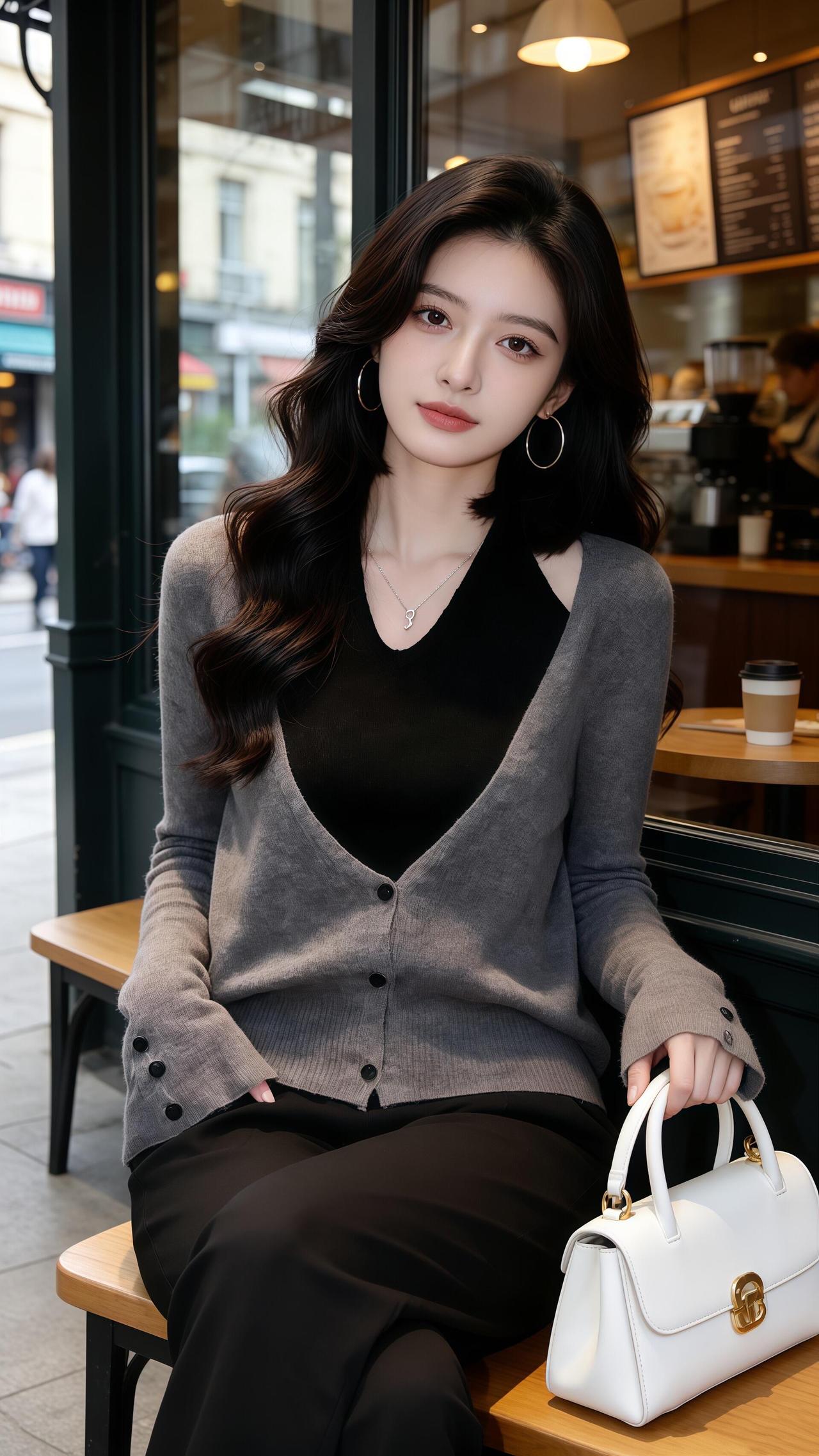 『半窗月痕·清平乐·街角咖馆闲坐』 灰衫叠素,漫倚藤椅住。 白包轻垂阶畔树,街影入窗如雾。 环珰微曳风柔,鬓丝暗惹香浮。 灯暖玻璃透影,咖香漫过墙头。 闲身不系尘愁,笑看车去人留。 一晌浮生偷得,此间滋味长留。 漫数檐边光转,忽觉岁月温柔。 无需寻芳远岫,眼前即是清秋。