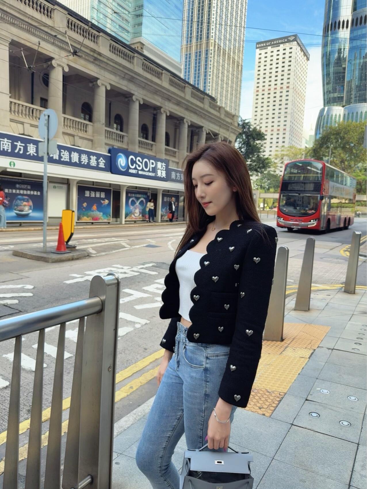 半窗月痕·江城子·港街漫步 晴光泼满港街长,倚银栏,望流光。双层巴士,穿巷过楼廊。石砌檐牙凝旧韵,云影晃,映玻墙。 轻衫裁得晚风凉,手提包,立斜阳。鬓丝微拂,笑意落眉旁。不惹尘喧唯自赏,车声里,味悠长。 更喜高楼连碧宇,旧街新景共徜徉。一帧光影藏心事,半盏清欢趁暖阳。 漫数街前人行色,忽觉此间岁月香。
