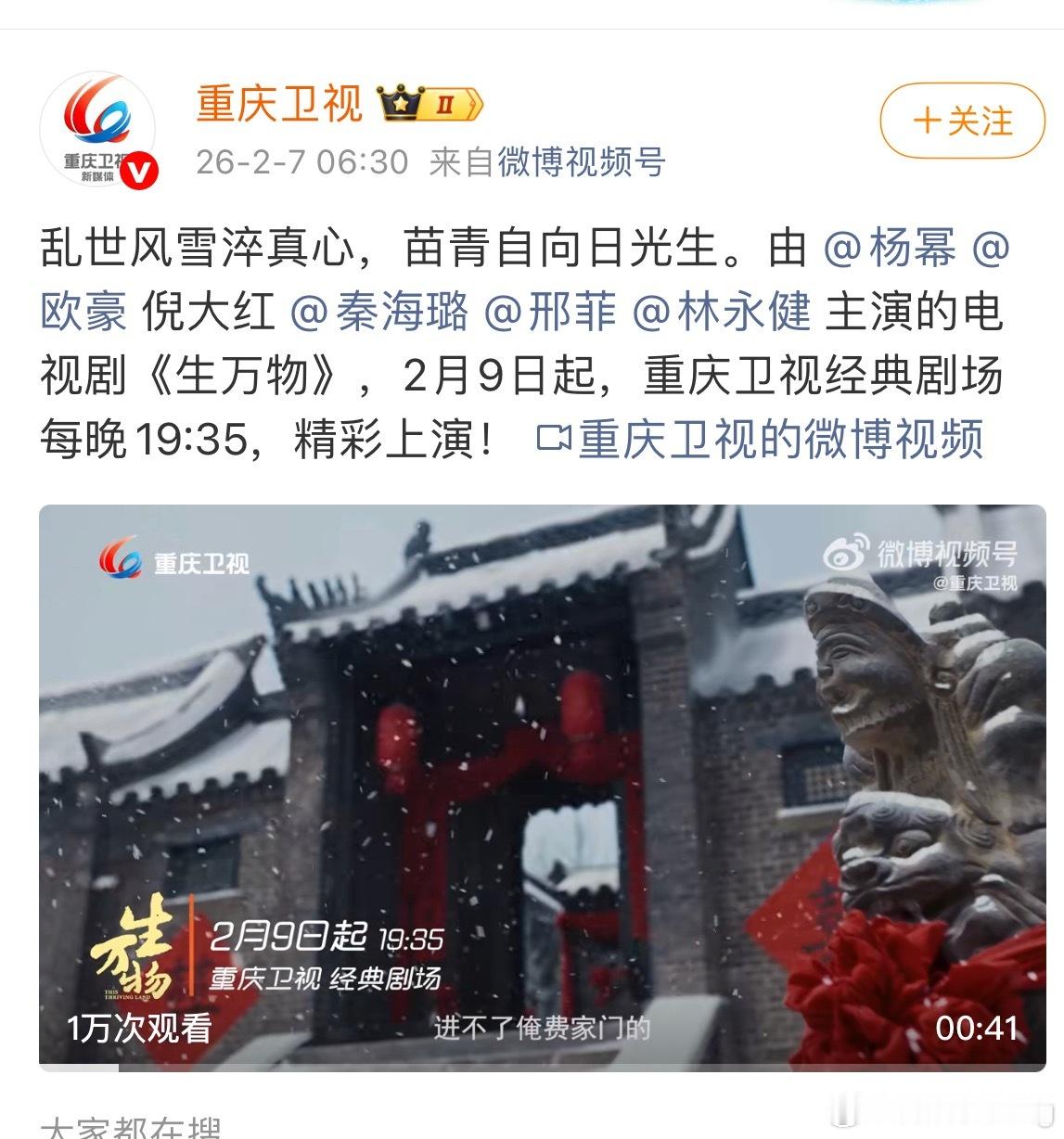 重庆卫视 山东卫视 河北卫视黄金档重播杨幂宁绣绣…生万物不愧是大爆剧啊,一直在