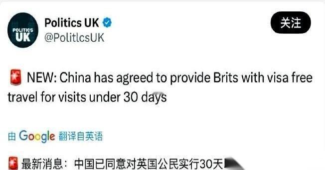 G7里,就快只剩一个了。 消息传开了,中国打算单方面给英国免签,一来就是30天。 这下,德国、法国、意大利、日本、加拿大,现在再加上英国,七个里头六个都能抬脚就来。 而如今还卡住的那个唯一,就剩美国了。 从去年年底起,我国就陆陆续续给G7国家开放免签,比如德国和法国,在元旦当天就已经正式上路了。 这种单方面的免签,说白了就是我国主动抛出橄榄枝,一种很明显的姿态,是我们欢迎朋友上门,不设门槛。 谁来我们都欢迎,自由进出并不会降低国家的尊严,反而正是大国的自信和气度。 可对比美国,那真是两张完全不同的脸,美方至今对我国护照持有人依然是传统意义上的"高门槛",签证申请繁复是一回事,就连“快速办理”也被设计成了一种新型盈利模式。 你如果想快点拿到签证,不好意思,得走VIP通道,掏钱,而且还不便宜。 普通申请者,哪怕材料齐全,也要数周排队审核,你想走得快那就得加钱,不然你就只能在队尾慢慢等。 这种从细节中露出的态度,其实非常真实:对我国公民,不是以“朋友”的身份接待,而是当“客户”对待,一切以付费优先,一切服务都带价格标签。 而我们做的正相反,我们对G7国家推免签,几乎没有对价、不做交换,不是因为我们求什么,而是国家用行动展现开放,来就是客,不谈条件。 我们的这个姿态,打从2023年疫情防控措施优化之后,就逐渐展开:先是对新加坡、马来西亚、泰国等东南亚国家免签,现在范围扩展到西方发达国家,其实并不局限于G7。 可以说,这就是我国为推动人员自由交流、促进双边互动、稳定外部环境所做出的全局性考量。 真正的国家自信,是不怕任何一方入境,只要你守法重序,该查的查、该放的放,就是这么坦荡。 而美国的做法,说穿了,倒像是在“过滤”人,申请材料越来越繁琐,每一个环节都更倾向于筛人、卡人,而不是欢迎人进来。 更别提时不时爆出的各种歧视性审查,诸如留学生被关“小黑屋”、商务访问被拒签等等新闻,已经让不少人对美方的签证态度感到寒心。 在这种对比之下,其实谁对外更友好,谁更有真正的自信,一目了然。 而更有意思的是,这种情况已经悄悄引起外媒关注,英国《金融时报》、法国《世界报》都在讨论:中国为啥对G7各国一个接一个免签,但就是没有动美国? 其实不用说得太明白,大家心照不宣。 当然我们也得承认,签证政策本来就是外交层面的风向标,它不光是技术问题,更是态度表达。 不是说美国一直以来都这样,而是在中美关系当前整体气氛偏冷的大环境下,美方并没有展现出太多改变的诚意。 过去几年,因为一些不确定和风波,我们看到很多人一度低估了我国对世界的吸引力。 但如今局势在改变。不少外媒也逐渐认识到,来中国的签证越来越方便,对国际人才的吸纳也在提速,再加上经济继续恢复回温,这样的中国,对外界是有现实吸引力的。 可反过来,美国现阶段对中国公民仍旧是“谨防式”的态度,怕间谍、怕渗透、怕留得太久,这种几乎有点“冷战余绪”气味的思路,在2026的今天,显得格外僵化。 而最能说明问题的,是这两国对彼此公民的“态度温度”,在中国眼里,外国人是来旅游、来交流,是亲近和合作的开始。 但在美方,有时却把中国申请者当成潜在的不安定因素,仿佛每个人都会是例外,这不是平等,不是尊重,只是一种偏见掩盖下的防御心理。 再往深一点看,中方不断放宽签证政策释放的是一种信号:不是怕谁来,也不是求谁来,而是我们愿意搭建桥梁,这种姿态,是开放型大国的典型特征。 从签证这一件小事,其实能照出国家格局的大小,至于谁是真正愿意沟通,谁永远把利益放在最前,相信越来越多的人,自己会看懂。