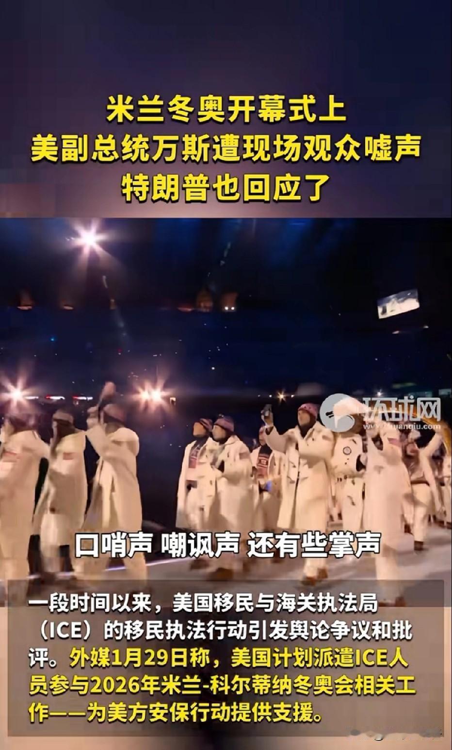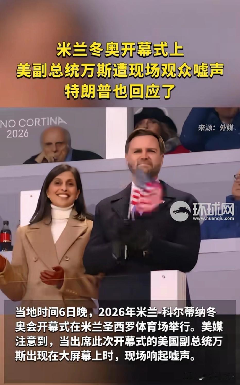 2月6日米兰冬奥会开幕式上,一场本该聚焦全球运动员的盛会,却因美国副总统万斯的到场遭遇了意外的嘘声。作为国际赛事的非参赛方,万斯的出现本应是外交礼仪的一部分,但现场观众用持续的“嘘声”表达了明显的不满。 这场开幕式以“和谐”为主题,米兰和平拱门与科尔蒂纳广场的圣火双燃,全球运动员方阵同步入场,中国钢琴家郎朗与意大利艺术家的合作演出更是传递了文化交融的温暖。然而当万斯出现在运动员观礼席时,现场气氛骤变——观众席上响起此起彼伏的“嘘声”,这种带有明显鄙斥意味的声音,与开幕式“尊重、共融”的精神形成鲜明反差。 更值得玩味的是,前总统特朗普随后在社交媒体上公开批评“嘘声是对万斯的不公”,反而坐实了万斯“不受欢迎”的处境。要知道,冬奥会开幕式的核心是超越政治的体育精神,观众的集体反应绝非偶然,正如“丢脸”一词的释义——失去体面与好感,万斯此次行为无疑让其在国际舞台上“颜面尽失”。 从希腊圣火经63天传递到米兰,这场跨越千年与地域的冰雪盛会,最终让某些政治人物的“傲慢”无所遁形。观众用嘘声写下的注解,或许比再多辩解都更有力:真正的体面从不是来自自我标榜,而是对他人与世界的尊重。