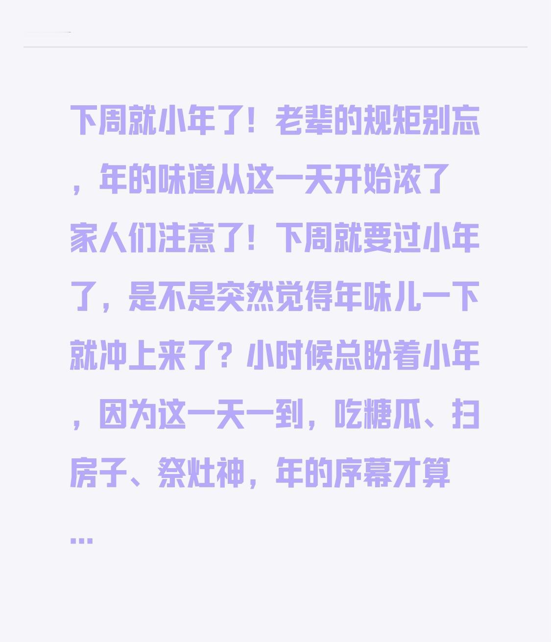 下周就小年了!老辈的规矩别忘,年的味道从这一天开始浓了 家人们注意了!下周就
