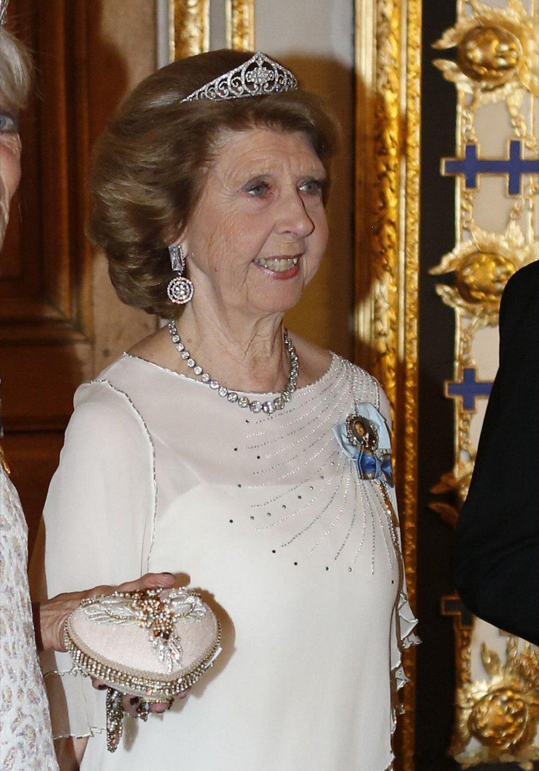 露易丝主要是在王储妃时期戴这顶王冠的次数比较多,后来熬到升级成王后了,这顶王后就留给继孙女们使用(图4~图7,哈加四公主都戴过),1964年,德西蕾(图7~图8)与尼尔斯·西尔弗斯基厄尔德男爵结婚时,露易丝将这顶王冠作为结婚礼物转赠给她,从此成为德西蕾最重要的珠宝。
