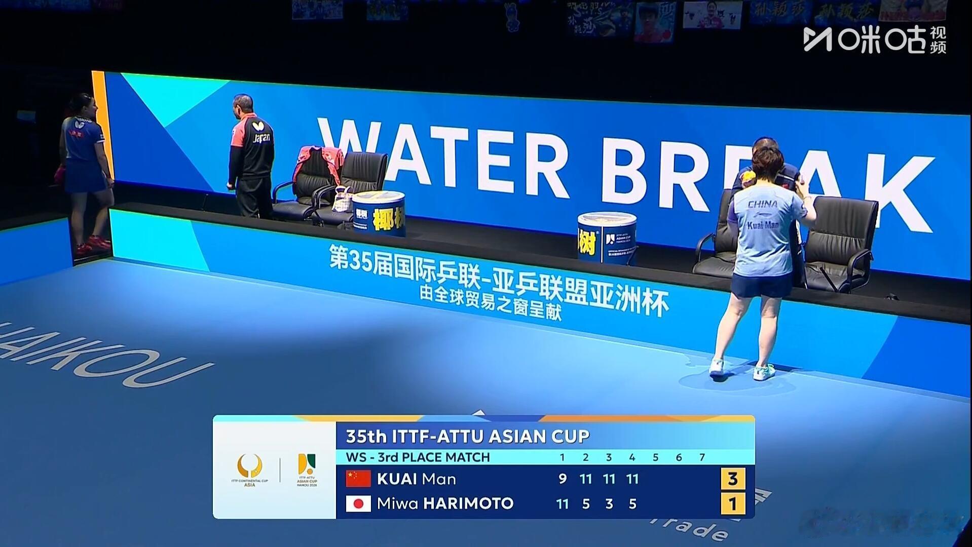 国乒包揽亚洲杯女单金银铜牌蒯曼4比1张本美和蒯曼🇨🇳vs张本美和蒯曼🇨🇳4-1战胜张本美和获得亚洲杯铜牌🥉第一局9-11第二局11-5第三局11-3第四局11-5第五局11-7