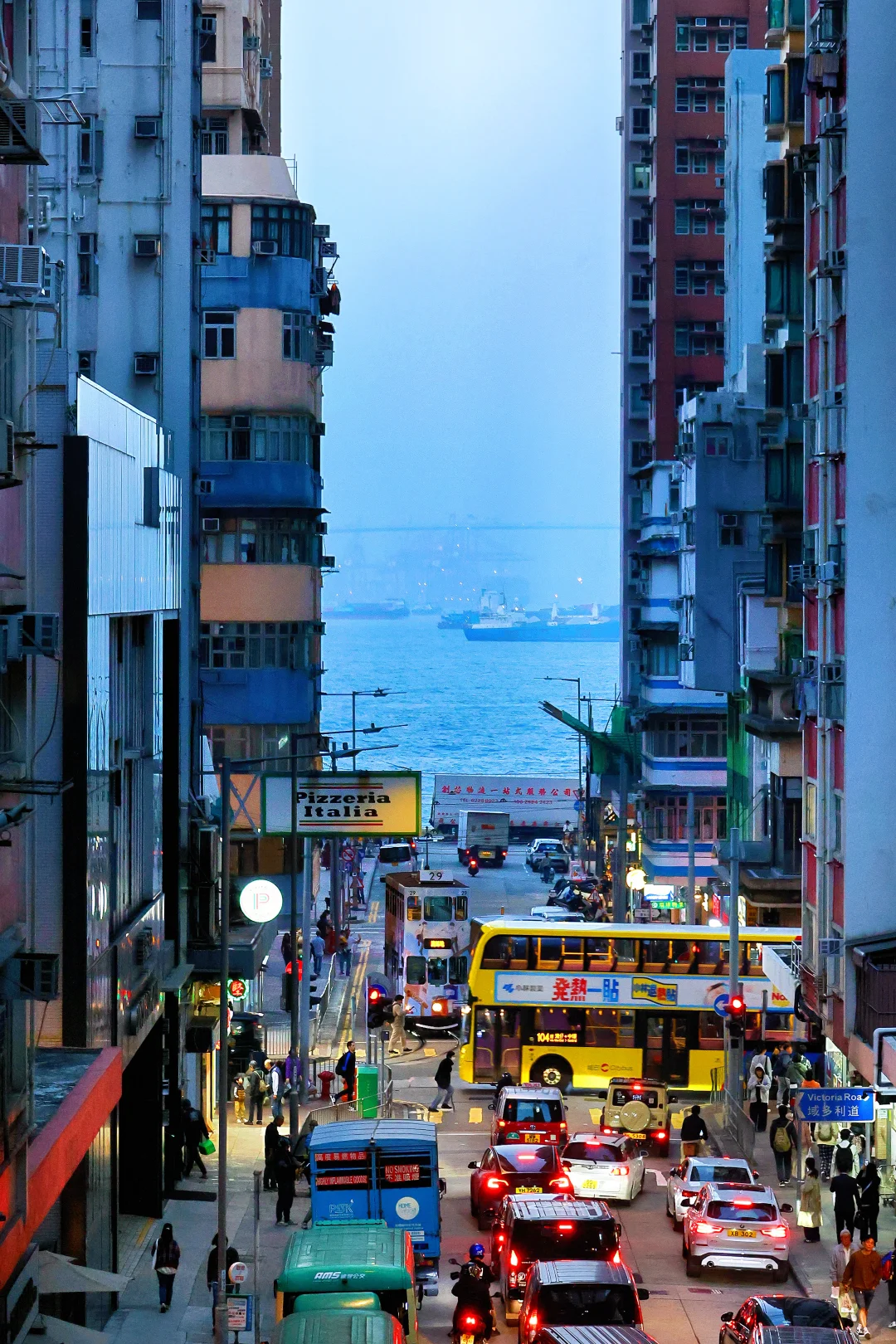 天桥上拍的,一边可以拍到双层巴士,另一侧拍到来往的车流