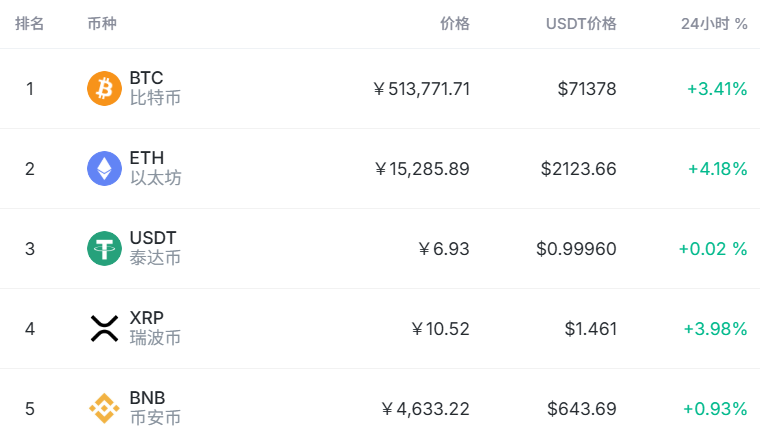 2月8日晚,比特币向上触及71000美元关口。行情显示,截至21:51,比特币涨至71300美元上方,过去24小时内涨3.4%。以太坊、泰达币等主要品种均有不同程度上涨。