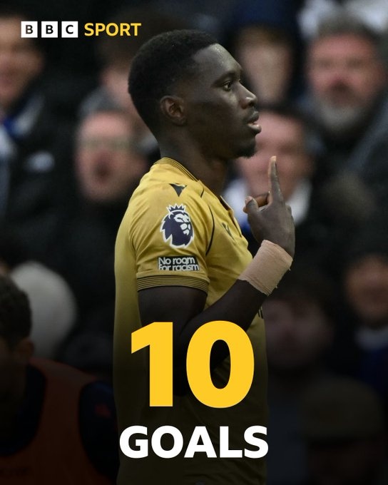本赛季,伊斯梅拉·萨尔已经打进10球追平马特塔,并列水晶宫队内射手王。