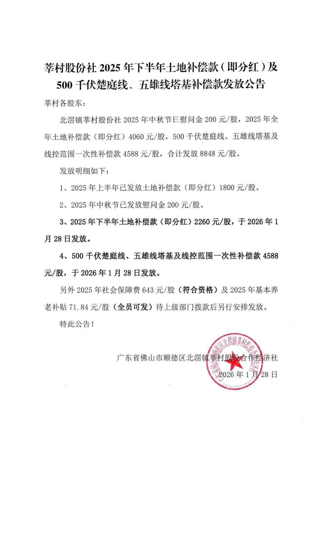 2025年每股分8848元!佛山这个村发布通知
