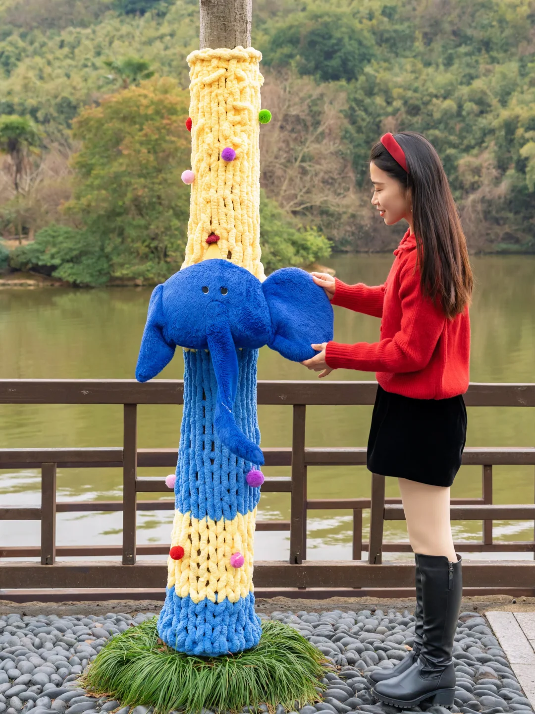 ✅戏水广场:和NPC互动合影,打卡“Horse发生”、“拍马屁”,湖边还有7棵穿上毛衣的树,很有趣