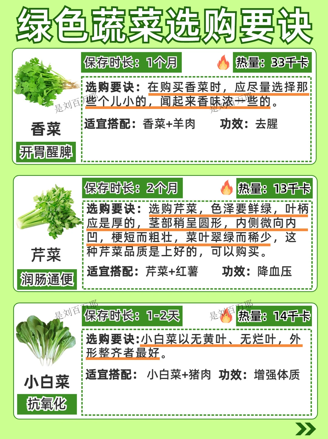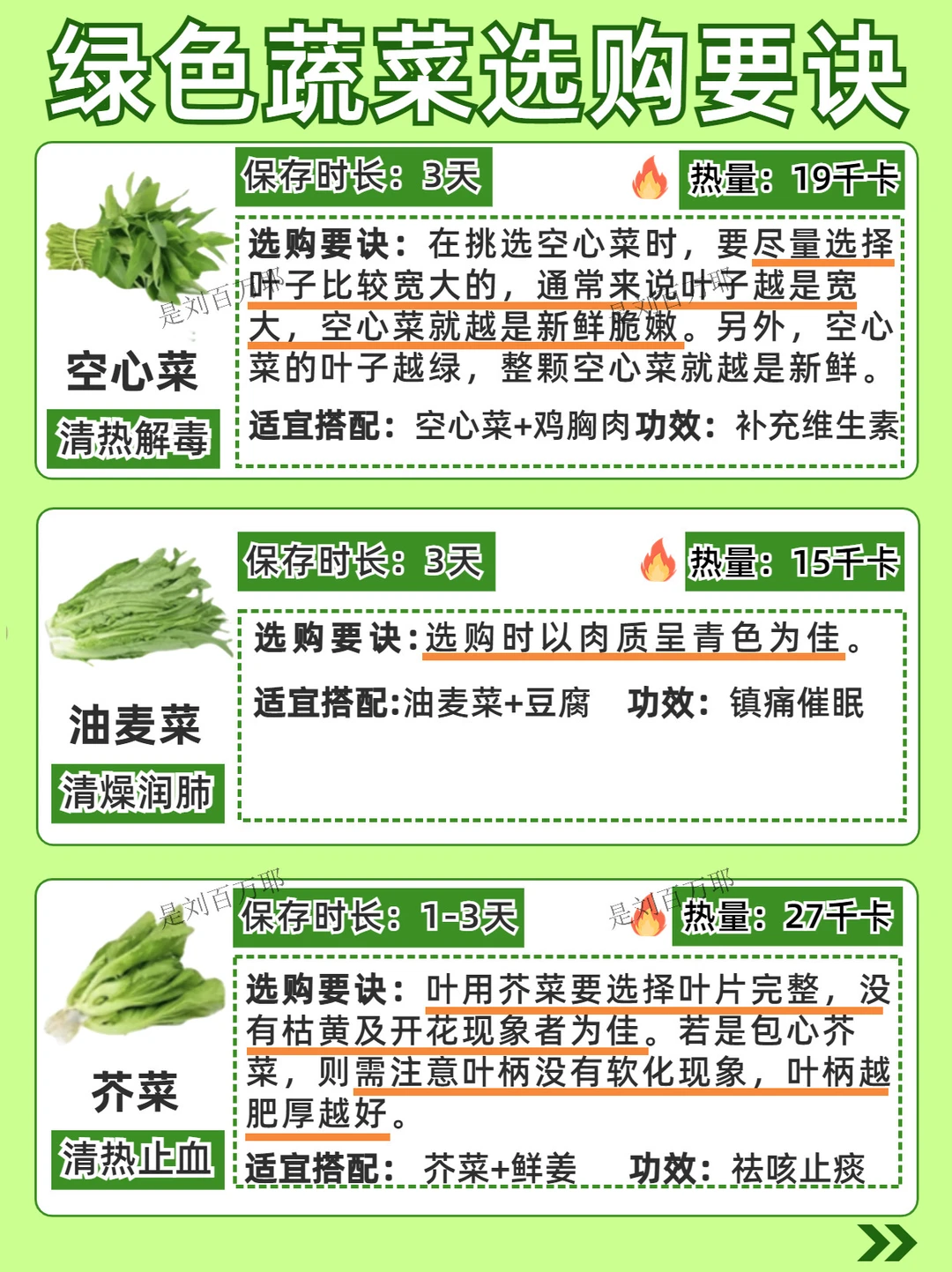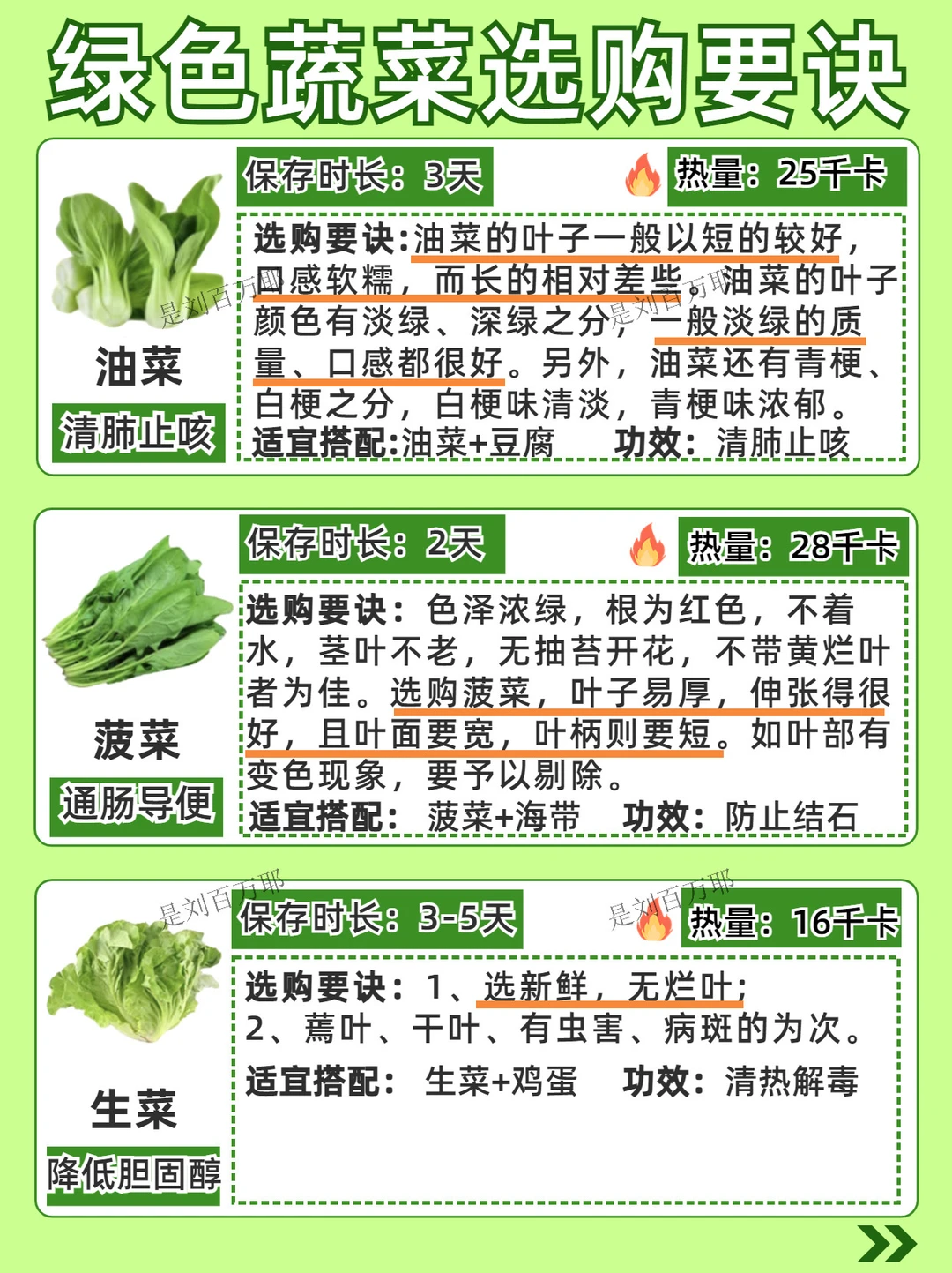 今天给大家整理了一期2️⃣5️⃣种常见绿色蔬菜的选购要诀,也是大家呼声较高的一期,赶紧🐎住~