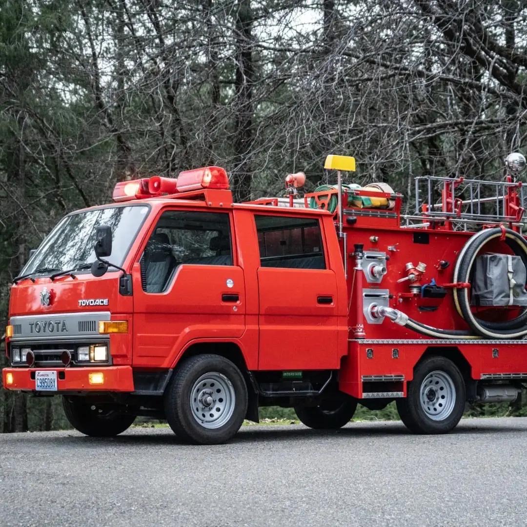 1993 年,Toyota 基于第三代 ToyoAce 平台,推出右舵双排座消防专用车型,这是一款为日本本土城镇与社区量身定制的轻型消防车。它采用经典的梯形车身结构与短轴距布局,兼顾狭窄街道中的灵活性与应急响应效率。动力方面,搭载 2.0L 至 2.4L 自然吸气汽油或柴油发动机,最大功率约 90—120 马力,匹配 5 速手动变速箱,配合低速高扭调校,使其在满载水泵、消防器材与人员时,依旧保持稳定输出。车身采用双排四门设计,可同时容纳 5—6 名消防员,实现“人装一体”的快速出动逻辑。在 90 年代的日本,城市消防体系尚未高度集中化,这类 ToyoAce 消防车广泛服役于乡镇与社区消防团,日常承担火灾初期处置、交通事故救援与防灾巡查等任务。它没有大型消防车的压迫感,却以可靠、坚韧和高出勤率,成为居民心中最熟悉的“红色身影”。丰田汽车知识 经典老车 汽车人共创计划
