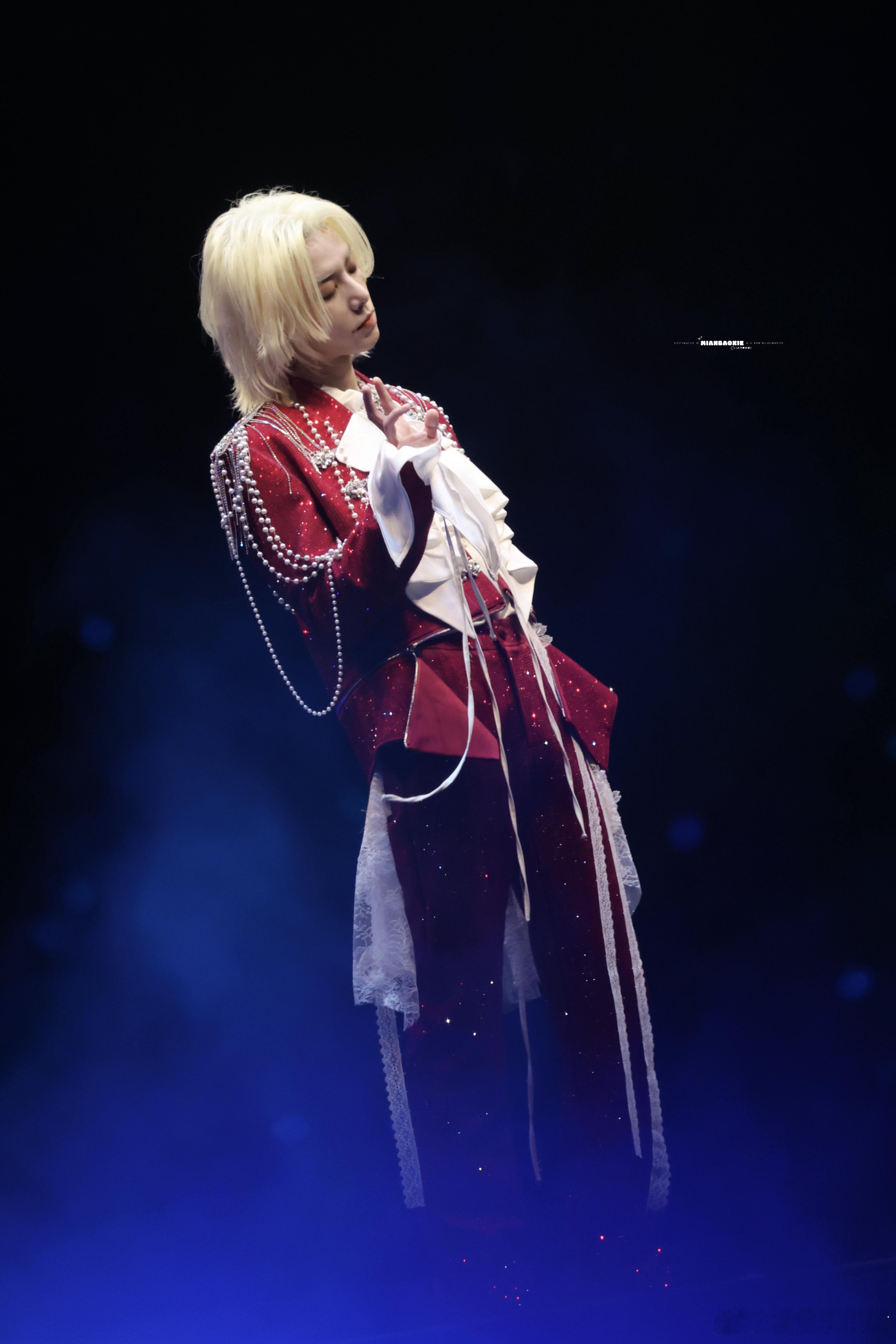 华晨宇星芒红宝石将华贵与不羁完美融合,红色亮片西装搭配珍珠碎钻,宛若星芒红宝石降临,白金狼尾发型勾勒独特轮廓,每一个动作都充满力量,尽显舞台王者气场。