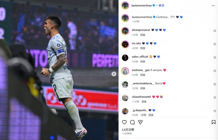 跻身队史射手榜前三!劳塔罗社媒纪念:171球,仍在继续……