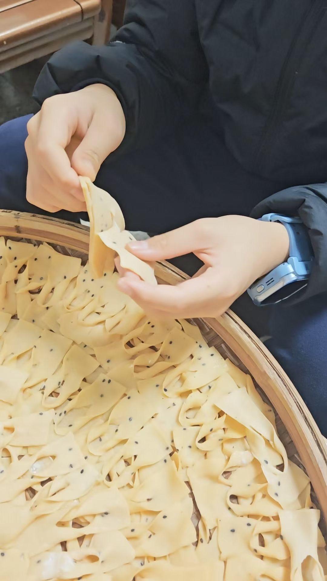 什么是年味? 从做手工开始,于炸蛋散、捏油角的烟火气里愈发浓烈。一家人围站灶台边,和面搓条、扭花成散,擀皮包馅、捏出花边,指尖翻飞间,面团化作精巧的模样。 油锅滋滋作响,蛋散炸得金黄酥脆,油角浮起香飘满屋,案板上的欢声笑语混着热油香气,成了最动人的年曲。 无需精致的手艺,笨拙的操作里藏着默契,滚烫的美味裹着团圆的甜。 这亲手制作的年味,是指尖的温度,是烟火的芬芳,更是刻在心底的、独属于家的温暖与欢喜。