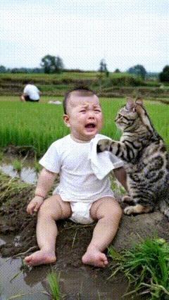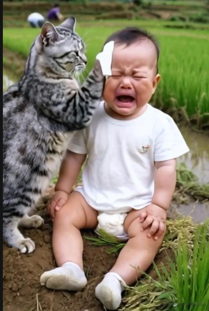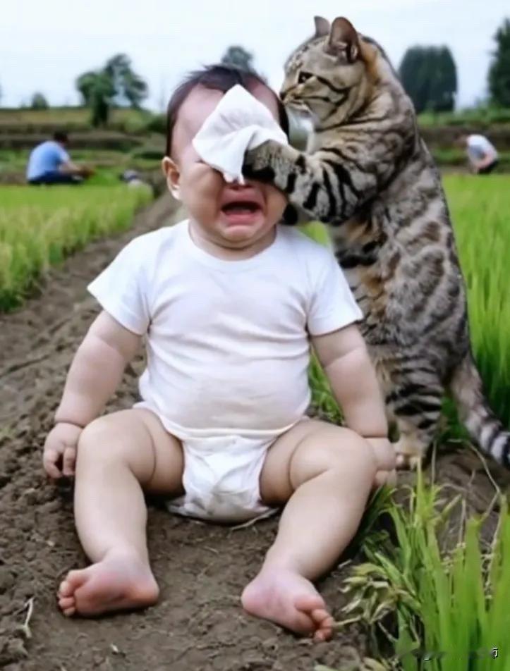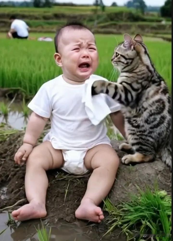 全网都笑崩了。小宝宝跟着自己的爸爸妈妈爷爷奶奶去田里面干活,但是爸爸妈妈爷爷奶奶都实在太忙了,没有时间管小宝宝。而这个时候小宝宝比较调皮,竟然把爸爸妈妈爷爷奶奶插上的苗给薅了出来。爸爸就吵了他,说:“爸爸妈妈爷爷奶奶好不容易把这个苗给插进去,你把它们都薅出来,是不是想挨打呢?”被爸爸训斥了之后,小宝宝委屈地哇哇大哭起来。而这个时候,他竟然把薅出来的苗给插了进去,似乎是在说,我也可以帮爸爸妈妈爷爷奶奶干活。而这个时候爸爸就急了,说:“你在那里别帮倒忙了,你会插个啥?你插进去的都是倒的,插的我们还得重新弄。”小宝宝一次又一次地被自己的爸爸嫌弃,所以小宝宝就特别的委屈,在那里哇哇大哭起来。但是这个时候家里人都不管他,因为根本没时间,他们太忙了。而这个时候家里的小猫咪的做法真的是让人特别感动。小猫咪看到小宝宝被训斥之后在那里哭,就学着妈妈的样子,拿了一点点卫生纸去给小宝宝擦眼泪。当它发现把小宝宝哄不好之后,竟然还将小宝宝搂入怀里,不停拍着他说:“宝宝不哭,宝宝别怕,宝宝最棒了,我在这里陪宝宝一起玩好不好?”看着小宝宝被小猫咪如此温柔地对待,让人心里暖暖的。小宝宝在小猫咪的陪伴下,或许能渐渐忘记刚才的委屈。这一幕也让人感受到了动物和人类之间纯真的情感,小猫咪用它独特的方式给予小宝宝安慰,实在是太可爱、太温馨了。