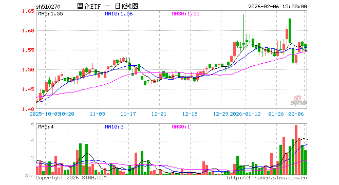 2月6日,国企ETF(510270)跌0.32%,成交额447.46万元。当日份额增加100.00万份,最新份额为1983.21万份,近20个交易日份额增加600.00万份。最新资产净值计算值为3077.94万元。