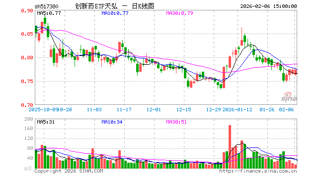 2月6日,创新药ETF天弘(517380)涨0.00%,成交额1047.91万元。当日份额增加2000.00万份,最新份额为25.00亿份,近20个交易日份额增加4.38亿份。最新资产净值计算值为19.30亿元。