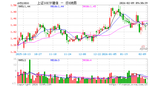 2月9日,上证50ETF建信(510800)开盘涨0.56%,报1.445元。上证50ETF建信(510800)重仓股方面,贵州茅台开盘涨0.20%,中国平安涨0.82%,紫金矿业涨3.50%,招商银行涨0.00%,兴业银行涨0.00%,长江电力涨0.04%,寒武纪涨2.22%,中信证券涨0.50%,恒瑞医药涨0.77%,工商银行跌0.14%。