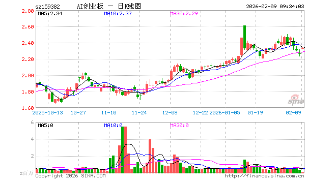 2月9日,创业板人工智能ETF南方(159382)开盘涨2.70%,报2.323元。创业板人工智能ETF南方(159382)重仓股方面,中际旭创开盘涨3.89%,新易盛涨4.37%,天孚通信涨9.50%,蓝色光标涨3.85%,协创数据涨3.07%,同花顺涨1.68%,润和软件涨1.61%,北京君正涨2.71%,昆仑万维涨7.66%。