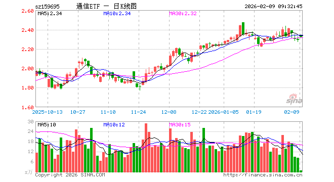 2月9日,通信ETF嘉实(159695)开盘涨2.23%,报2.339元。通信ETF嘉实(159695)重仓股方面,中际旭创开盘涨3.89%,新易盛涨4.37%,中兴通讯涨1.35%,中国移动涨0.06%,中国电信涨0.35%,天孚通信涨9.50%,中国联通涨0.41%,信维通信涨1.94%,中天科技涨4.75%,亨通光电涨3.73%。