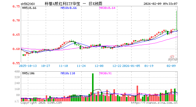标普A股红利ETF华宝(562060)业绩比较基准为标普中国A股红利机会指数收益率,管理人为华宝基金管理有限公司,基金经理为胡洁、胡一江,成立(2023-12-08)以来回报为44.33%,近一个月回报为5.58%。