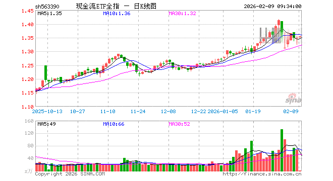 现金流ETF全指(563390)业绩比较基准为中证全指自由现金流指数收益率,管理人为华泰柏瑞基金管理有限公司,基金经理为胡亦清,成立(2025-04-23)以来回报为34.62%,近一个月回报为3.17%。