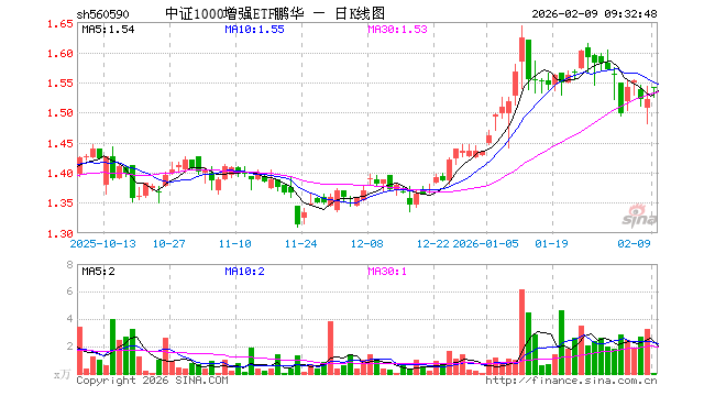 中证1000增强ETF鹏华(560590)业绩比较基准为中证1000指数收益率,管理人为鹏华基金管理有限公司,基金经理为寇斌权,成立(2023-09-01)以来回报为52.19%,近一个月回报为1.84%。