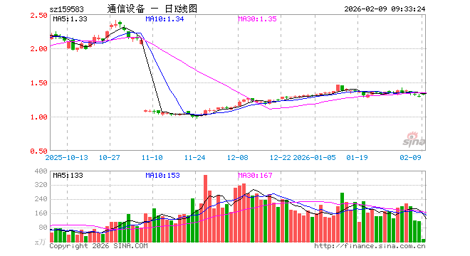 2月9日,通信设备ETF(159583)开盘涨2.39%,报1.328元。通信设备ETF(159583)重仓股方面,中际旭创开盘涨3.89%,新易盛涨4.37%,中兴通讯涨1.35%,天孚通信涨9.50%,航天电子涨2.65%,中国卫星涨1.92%,紫光股份涨1.81%,中航光电涨0.87%,剑桥科技涨4.08%,光迅科技涨2.05%。