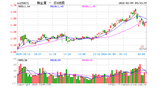 2月9日,稀有金属ETF工银(159671)开盘涨1.12%,报1.443元。稀有金属ETF工银(159671)重仓股方面,洛阳钼业开盘涨2.14%,北方稀土涨2.97%,华友钴业涨1.49%,盐湖股份涨1.39%,赣锋锂业涨0.14%,天齐锂业涨1.43%,中矿资源涨2.30%,厦门钨业涨2.50%,中国稀土涨1.49%,西部超导涨2.27%。