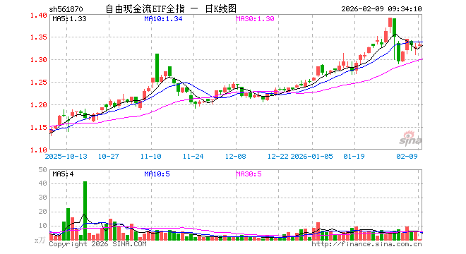 自由现金流ETF全指(561870)业绩比较基准为中证全指自由现金流指数收益率,管理人为华富基金管理有限公司,基金经理为李孝华,成立(2025-04-29)以来回报为33.64%,近一个月回报为3.15%。