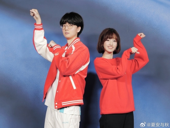 夏安晒和Viper合拍的营业照:过年倒计时!!新年就得穿点儿红色