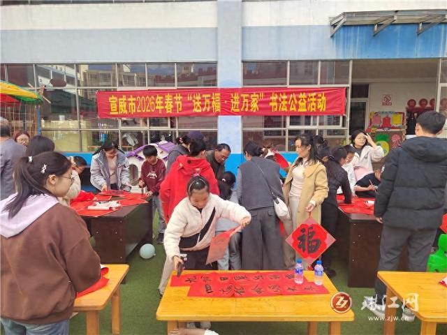 红灯笼与福字点缀的活动现场暖意融融,参与家庭有序签到,暖场环节点燃气氛。《过河》旋律中,“摇啊摇”游戏让家长们与孩子默契配合,“桃花朵朵开”让他们在互动中消融陌生感,云南特色“打跳”环节,全场手拉手共舞,让独自打拼的从业者们感受集体温暖。随后的亲子手工环节温情上线,宣威书法家协会会员专业指导下,家长与孩子共同执笔,蘸墨挥毫书写春联与福字,墨香间满是新春祝福与亲子温情。亲子游戏环节将活动推向高潮,“福字传递”“泡沫棒对决”“放鞭炮”等游戏,让他们卸下工作压力,重温童年乐趣,亲子默契在欢笑中升温。活动尾声,主办方贴心准备的笔袋、书包等实用奖品,以及“最佳默契亲子奖”“年味传承小达人”等荣誉,承载着满满关怀。合影留念的镜头定格下一张张幸福的笑脸。家长代表纷纷感言,感谢活动让他们拥有高质量亲子时光。现场还收集了家长们的意见与建议,为后续精准对接新就业群体需求、优化服务提供了重要参考。