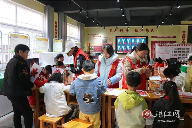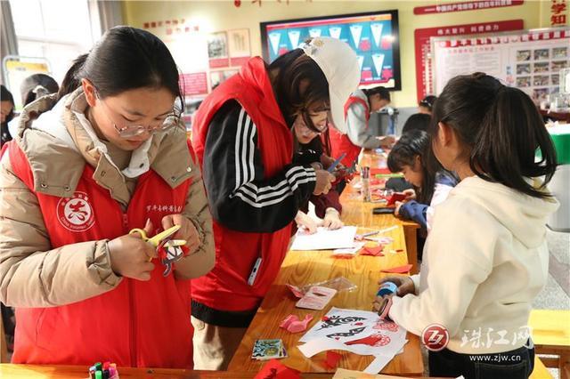 随着气氛升温,“2026马年猜猜乐”“拯救小美计划·年俗大闯关”等互动游戏轮番登场。小朋友们踊跃抢答、积极比拼,在趣味互动中积累年俗知识,成功闯关后的新年大礼包更让大家喜笑颜开。最受欢迎瞩目的当属剪纸环节!小朋友们热情高涨,在志愿者的耐心指导下解锁剪纸绝技,折、画、剪、裁一气呵成,每一次落剪都承载着新年期许,每一道纹路都蕴含龙马精神,一张张火红剪纸成为新年别致纪念。