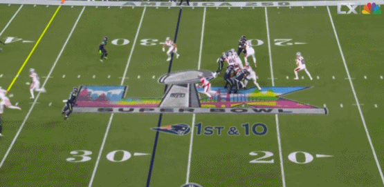 第四节还剩2分半时,梅耶传给史蒂文森,后者在皮球距离地面只差毫厘的情况下接球完成达阵,爱国者13-29落后海鹰。