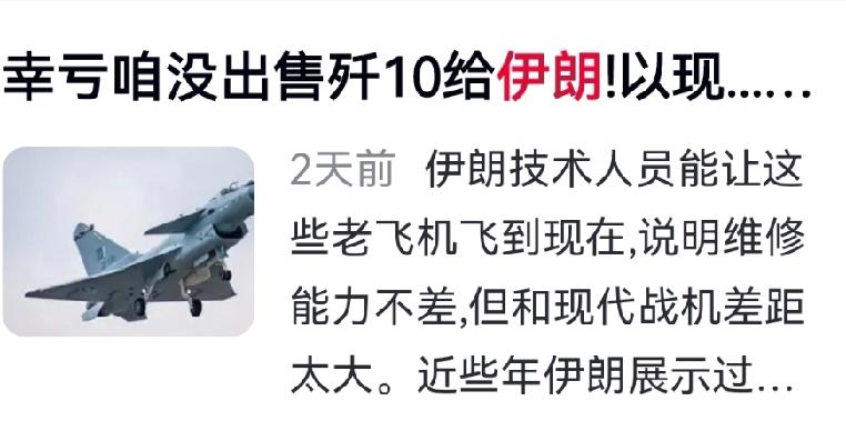 歼-10绝不能卖给伊朗,这不仅是战略问题,更是现实难题。 伊朗航空工业薄弱,维修F-14都得靠拆零件拼凑,精密先进的歼-10他们根本伺候不了。“太行”发动机的维护需要严格环境,伊方现有条件完全无法满足。更关键的是,现代空战是体系作战,伊朗缺乏预警体系与数据链支持,歼-10性能将大打折扣。 在以色列F-35等隐身战机面前,没有体系支撑的歼-10极易陷入被动,甚至可能成为战场上的“活靶子”。一旦出现战损,将对中国战机声誉造成长远打击。 不卖歼-10,不是放弃市场,而是保护品牌、规避风险。真正的战略远见,有时正在于懂得克制与取舍。 对此你怎么看?
