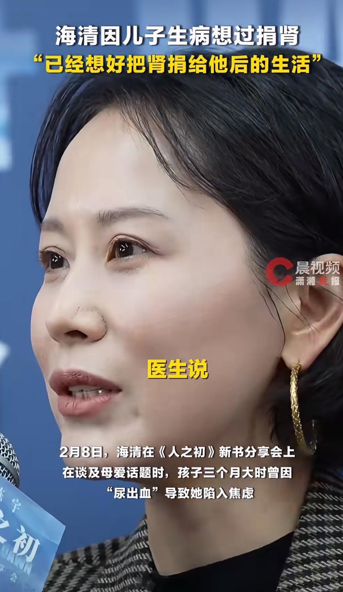 海清因儿子生病想过捐肾 海清这故事看得我眼泪打转。孩子尿血那会儿她才刚当妈不久,听到“肾移植”三个字估计天都塌了,第一反应就是“用我的”。万幸后来没事,现在儿子都19岁了。妈妈的爱真的就是无条件、不计后果的。