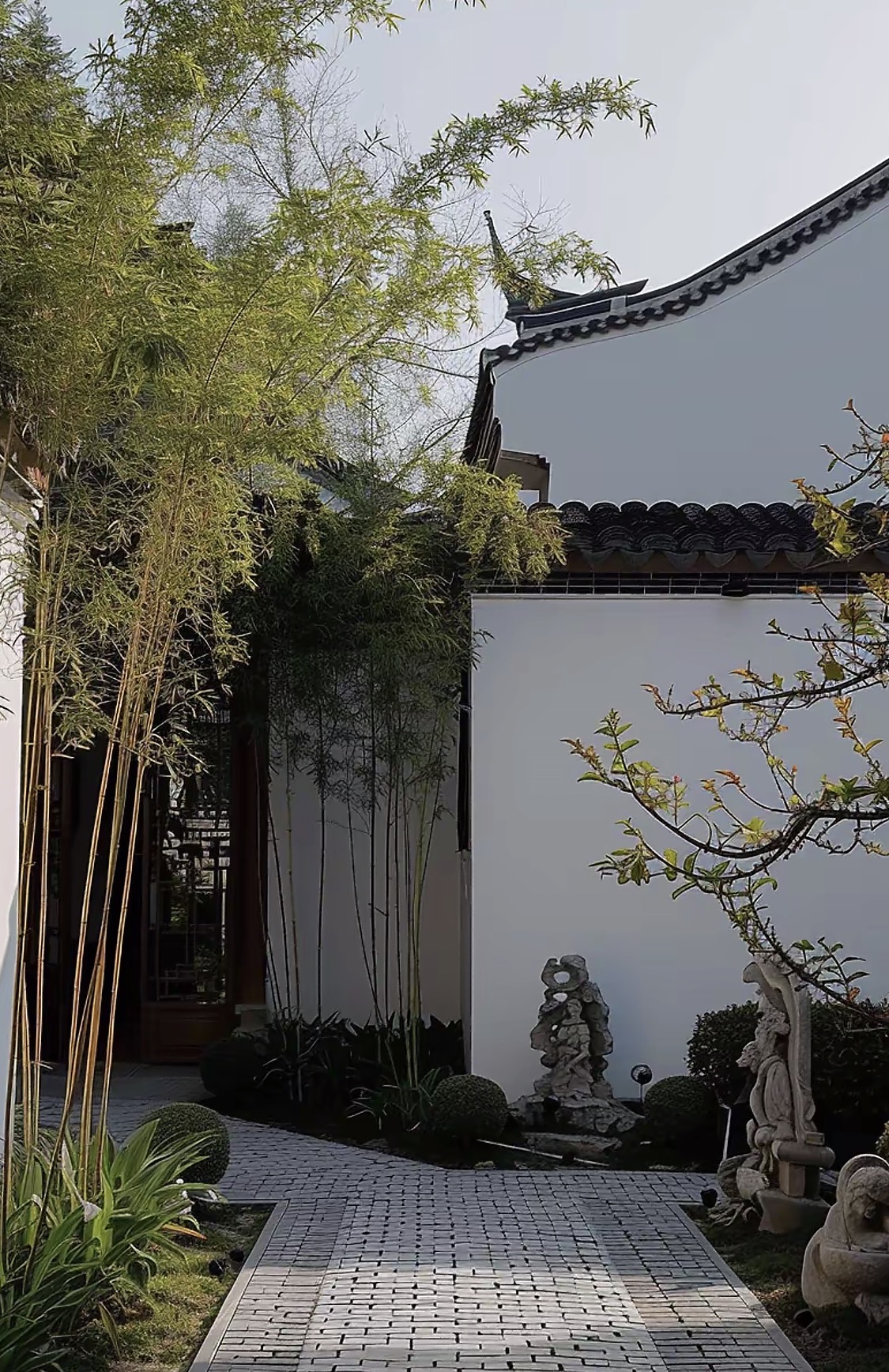 如果不喜欢影壁,也就是老古董元素大妈们,,无影壁,和穿透三进门过道,用曲径通幽代替一堵青石墙!