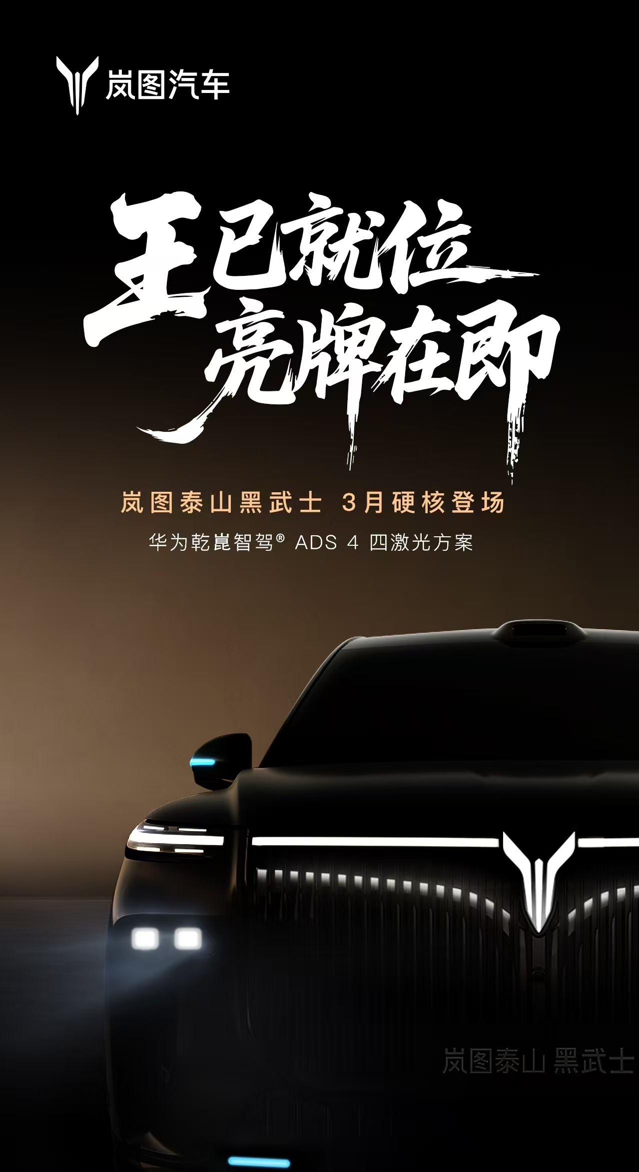 岚图泰山黑武士版终于官宣登场时间了,3月正式登场。