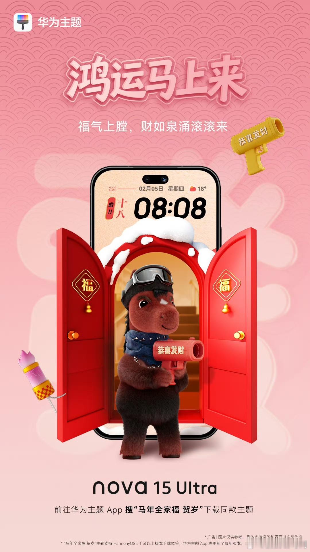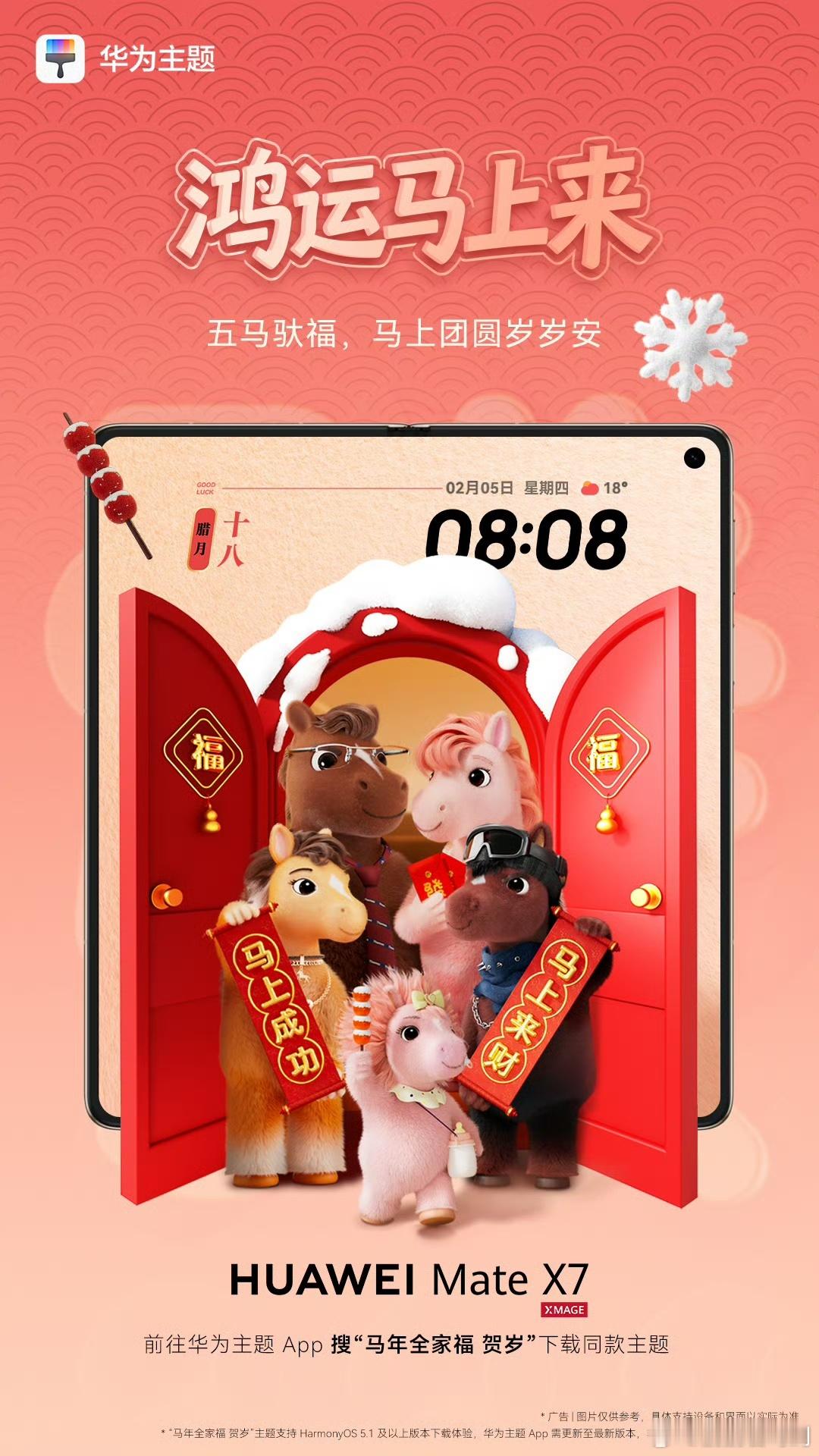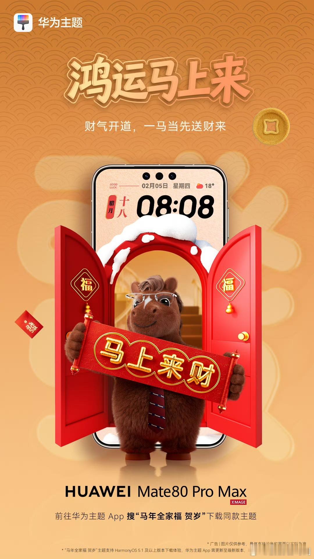 华子的“鸿运马上来”这个主题不错,换上马年限定专属主题-马年全家福贺岁,给你的手