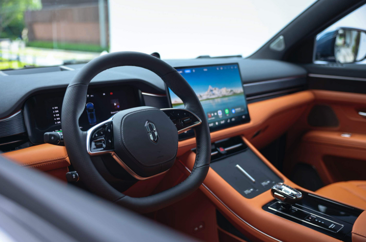 接着坐进车内,问界M7 Ultra新增赤茶橘配色,而这种颜色对于高端车型是比较常见,其它设计和此前在售车型保持一致,都是10.25英寸曲面全液晶仪表和15.6英寸2K悬浮式中控大屏组成,车机系统继续采用鸿蒙智能座舱,不过后排支持13.2英寸OLED大屏,娱乐体验有保证。而要说内部升级,全新的星环散射体+空间音频系统让车内影音娱乐体验得到升级,并且本身也是一个很精美的装饰。