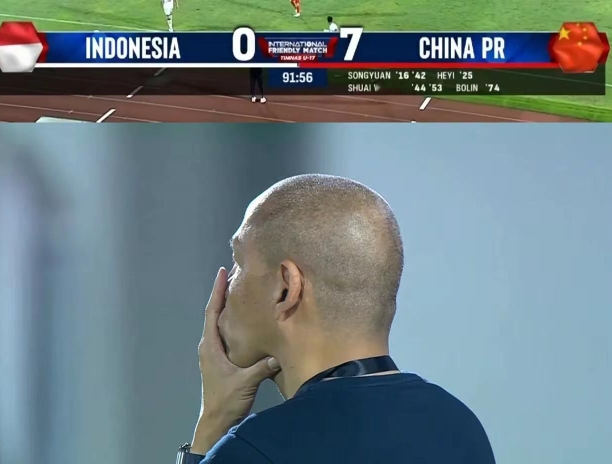 印尼U17队赛后哭成泪人,太惨了,真的不忍心啊!中国U17国少也是豪不手下留情啊!中国队7比0大胜,把印尼U17队彻底打崩溃了,这下好了,一场热身赛把印尼U17信心完全打没了,本来印尼足协邀请中国U17打热身赛是为了找回信心的,7球惨败是印尼足协万万没想到的,现在信心没找回来,这支印尼U17队员内心可能都会留又阴影,2月11日的第二场热身赛现在对印尼队就是一种折磨了。 印尼U17主帅诺瓦·阿里安托输球输得彻底破防了,中国队进第7球后直接怒踢水瓶,他已经不敢直视了,只希望比赛尽快结束。诺瓦·阿里安托可是带印尼U17队打进过2025年U17世界杯并创造历史,这场大败让诺瓦·阿里安托面临信任危机,如果第二场比赛再大败,恐怕诺瓦·阿里安托帅位有可能不保。 浮嶋敏的这支中国U17国少去年在呼和浩特四国赛,中国U16国少以5:2大胜澳大利亚U16,把澳大利亚主帅打下课了,这次不会又要把印尼U17主帅打下课?希望中国U17第二场热身赛上全替补吧!手下留情,少进几个球,得饶人处且饶人!