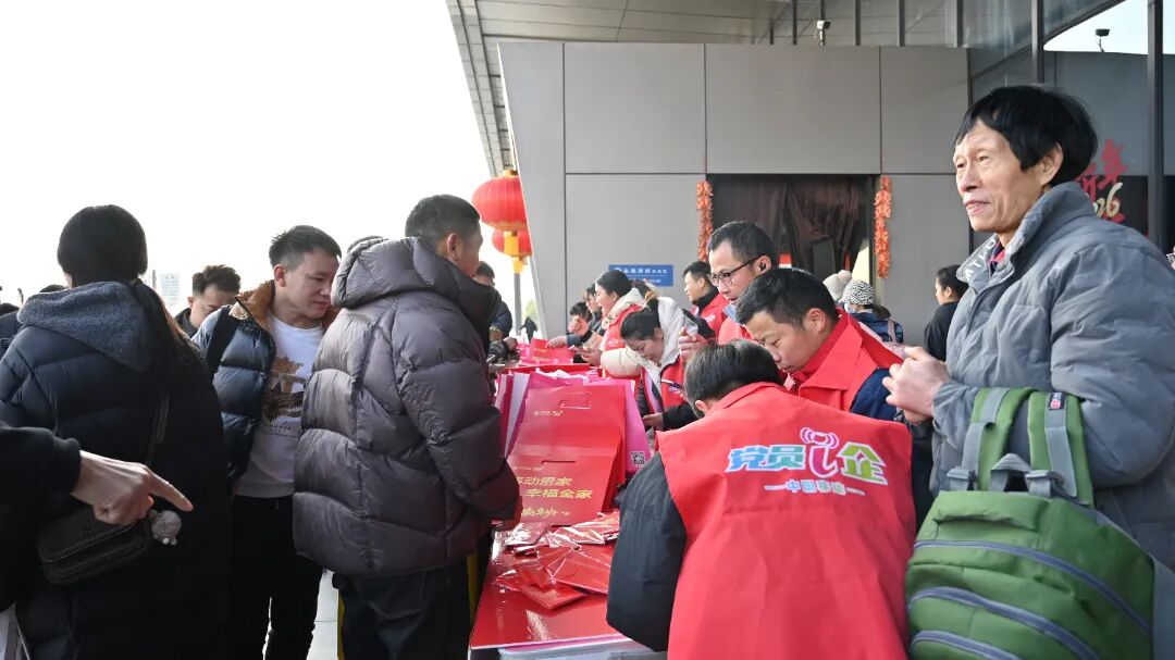 温情归途的背后,是人社部门的细致服务与周密安排。务工人员一进入车站,就收到了市人社局精心准备的“返乡礼包”,内含有春联、方便面、保温杯等实用物品。“开通高铁返乡专列,不只是运力保障,更是政企协同、为民办实事的生动实践。”市人社局党组成员、副局长李中钦介绍,为破解务工人员春节集中返乡“购票难、出行险、路途累”的痛点,市人社局早在一个月前便启动了全面摸排,逐企逐人登记出行需求,主动对接铁路部门争取专列资源,让每一位在永务工者都能“平安返乡、快乐过年”。年后,市人社局将持续升级服务,开通动车专厢、返岗专车,延续“点对点”接送模式,让务工者从“家门口”直达工作岗位,为企业复工复产按下“加速键”。
