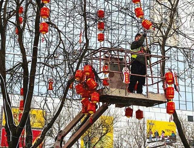 记者在市区大街小巷、公园广场看到,迎春灯饰布置工作正在有条不紊地进行。家住市区龙廷山水小区的张女士说:“灯笼一挂起来,过年的感觉一下子就有了。”与此同时,在市区公园路、东风路、高新大道等路段,工人们也正忙着装扮道路两旁的行道树。
