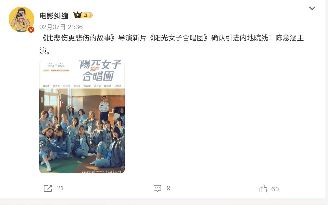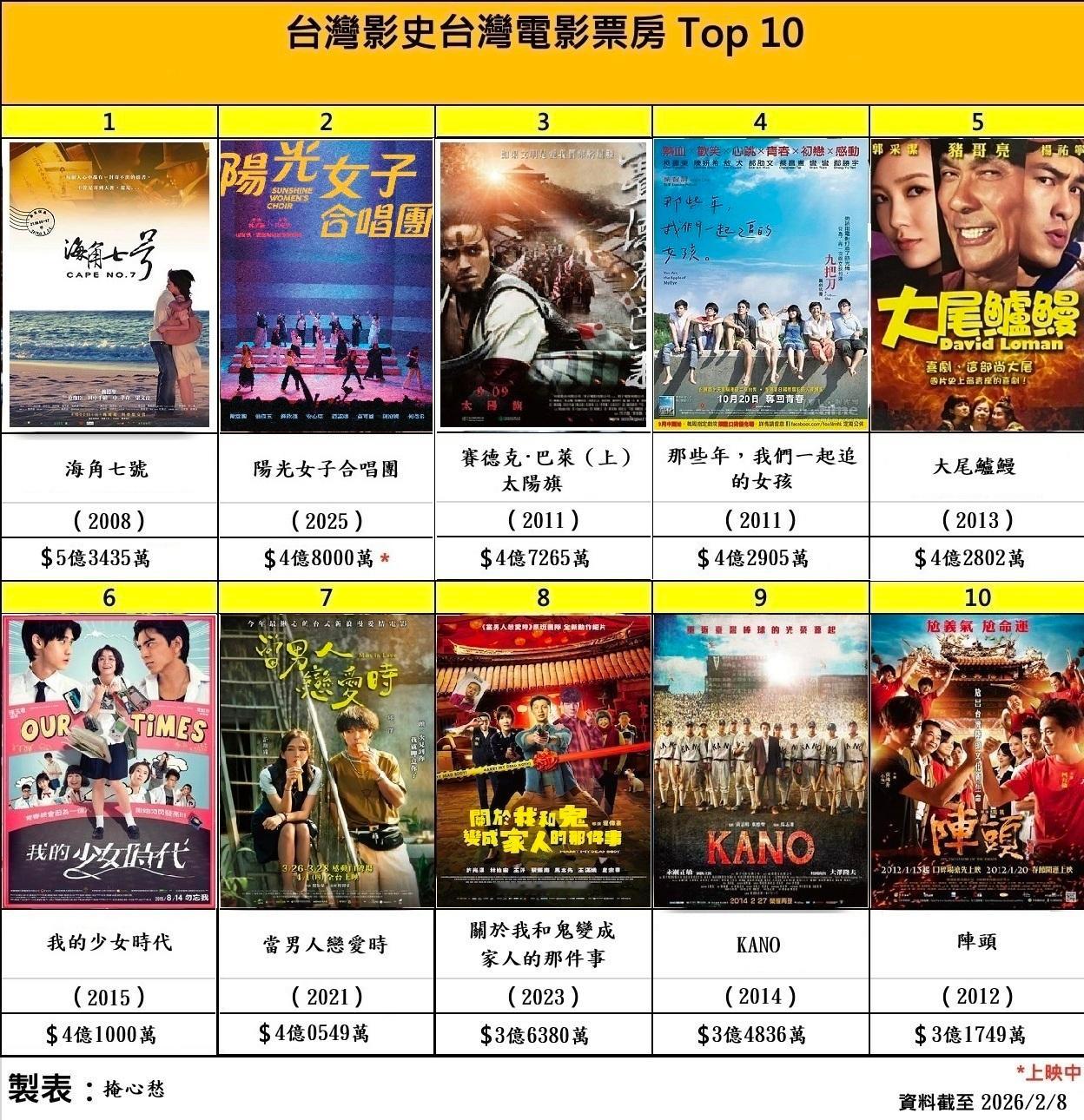 台片《阳光女子合唱团》票房已经4.88亿了!!!登台片影史票房冠军只差一步!!!