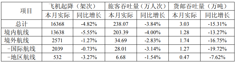 2月9日,厦门空港(600897)发布公告,2026年1月运输生产情况显示,飞机起降架次为16368架次,同比下降4.82%。旅客吞吐量为238.07万人次,同比下降3.84%。货邮吞吐量为3.03万吨,同比下降15.31%。