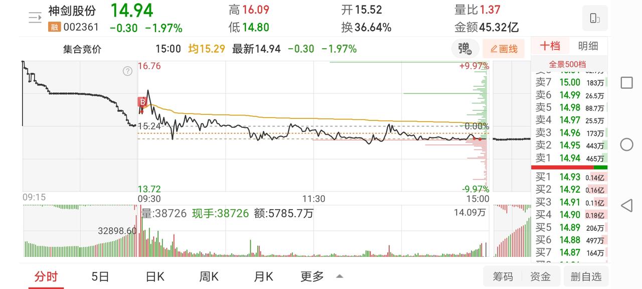 2月9日实盘:深南整体小肉出局;早盘低吸神剑吃面后尾盘全仓加满! 1、深南电路 深南竞价高开过周五涨停价最高点表现强势,但是开盘就出现资金下杀兑现,看整体支撑不错的情况下选择了格局,很快出现资金再次拉升突破开盘高点,但是明显没有持续做多的动能,所以选择在249卖出部分仓位,之后持续在分时均线附近震荡,午后出现拉升明显偏弱的情况下选择在247.37和246.61的位置分批清仓离场,这只个股最终盈利1.72%! 深南本来就是低吸博弈隔日冲高的个股,在没有资金持续进攻的情况下有肉就要及时离场,盘中的三个卖点都算是模式内的止盈点,但是在大盘这么好的情况下没有大幅吃肉确实有点遗憾! 2、神剑股份 早盘竞价出来协鑫超预期表现指向了太空光伏,因为现阶段高位情绪较差,所以感觉位置太高没有选择介入,神剑近2个点的高开是正常预期,开盘拉升后出现明显回落,在有明显支撑且板块不弱的情况下在15.58位置介入部分仓位,之后虽然有再次冲高,但是很快出现资金下杀兑现,虽然商业航天整体不错,但是神剑却始终难以再次突破分时均线,尾盘选择分别在14.95和14.93的位置全仓介入低吸,这只个股加满仓位后浮亏0.85%! 神剑两连板后早盘开盘其实并不弱,但是可能今天市场情绪太高,太空光伏抢戏明显,神剑反而没有资金去持续做多拉升,最终走出了一个明显断板形态,但是这只个股毕竟还是在低位,在商业航天中辨识度非常高,这个位置博弈龙头首阴是非常合适的,所以隔日神剑的表现还是比较值得期待的! 本文只限于分享和交流,不构成投资建议,股市有风险,投资需谨慎!